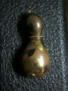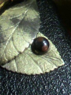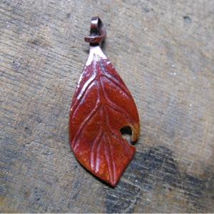 写真は最近、象嵌の練習に作った瓢箪のペンダントとテントウ虫付きの葉っぱです。