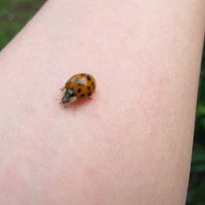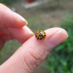 テントウ虫付きの葉っぱは色揚げ済みです。