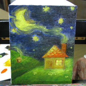 さて今日の製作はリング作りと平行(?)して油絵。約10年ぶりです。