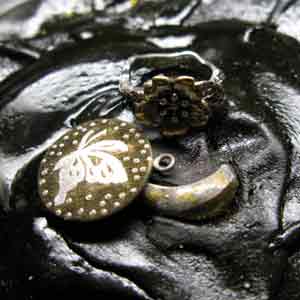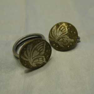 ムラの無ない暗黒色に銀色の蝶がくっきりと見える指輪の写真を近日中にはUPいたします。いたしたく候。
